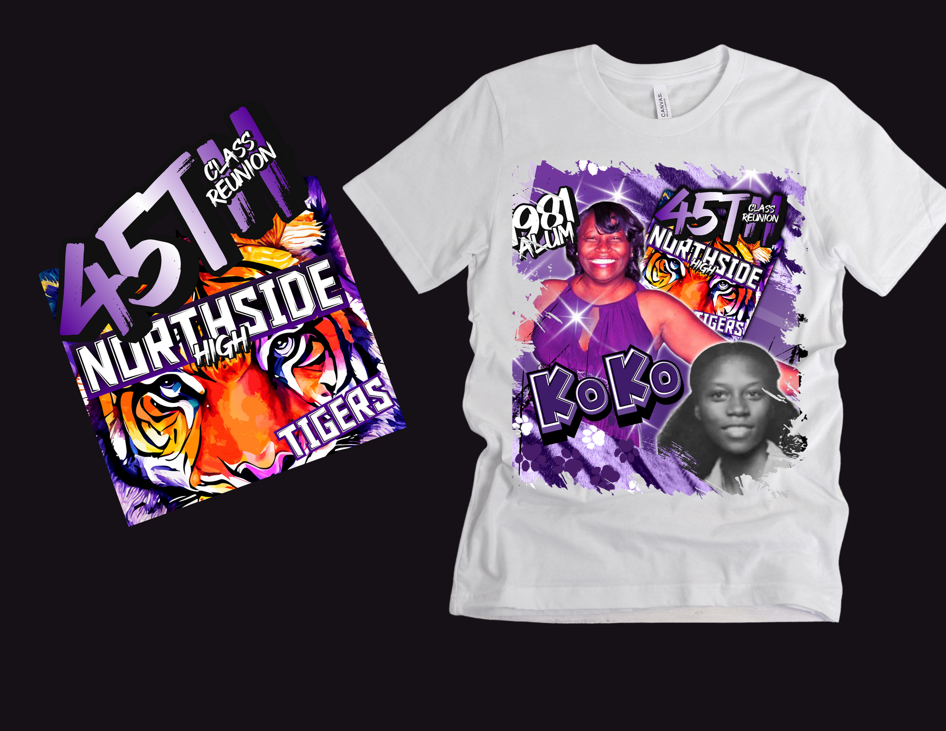 This sublimation CENTERPIECE tee celebrates Northside High School's class of 1981 45th High School Reunion in May 2026 ... Go Tigers!